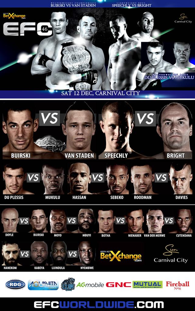 This was indeed another exciting fight to wrap up the fights for 2015 which saw MMA and EFC legend, Chris Bright stepping into the cage to take on former 2x champion Adam Speechly. This was a fight most of the fans were looking out for, to see if Bright still had it in him despite being out of the cage for 5 years and his age being a talk on the EFC streets.